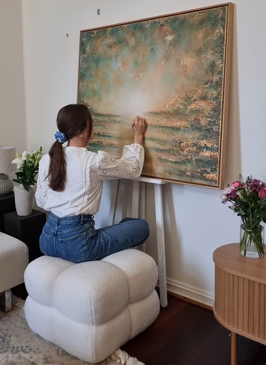 A commissioned artwork is a custom-made painting, specifically tailored to your space and personal preferences. When you contact me, we’ll work together to decide on the size of the painting, the color palette, and the type of motif you'd like. Most often, we use one of my previous works as a starting point for inspiration.