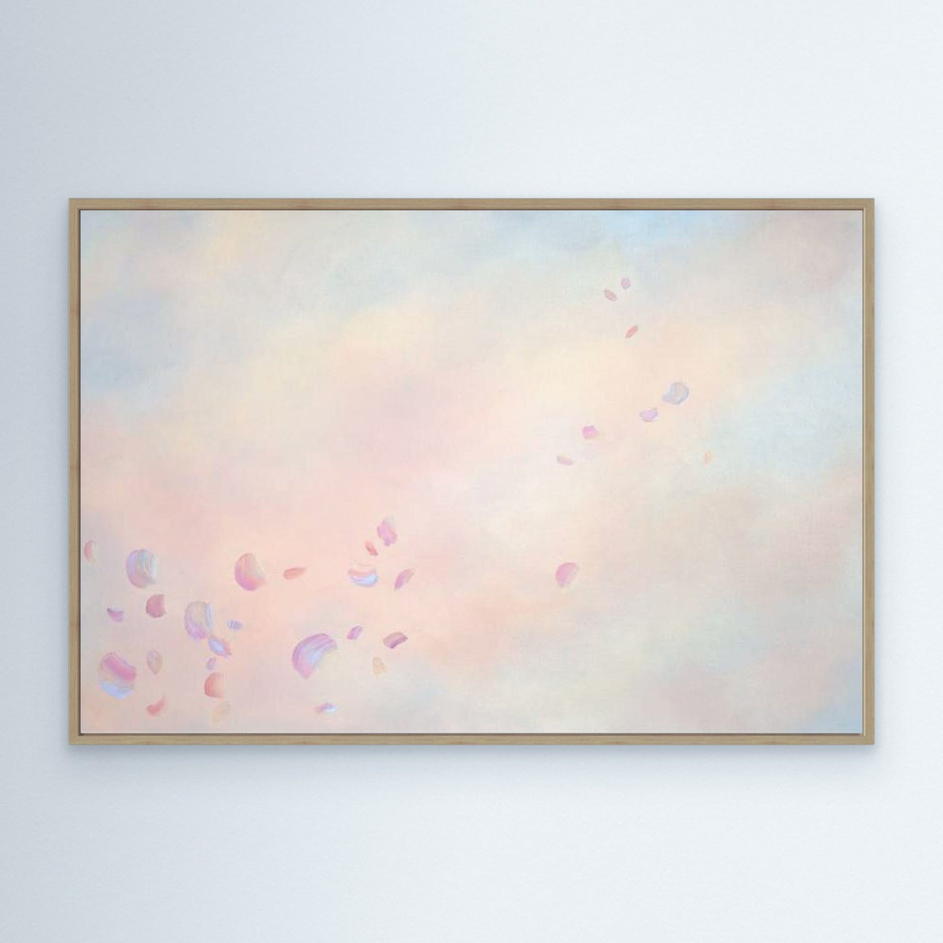 The edges of the canvas are mirrored. I highly recommend getting it with a floating frame, which will give the print an elevated, gallery-style appearance. The print “floats” inside a shadow gap frame, available in black, white, or oak. The oak frames are a beautiful oak veneer on solid wood. Everything arrives fully assembled and ready to hang on a sawtooth hanger.