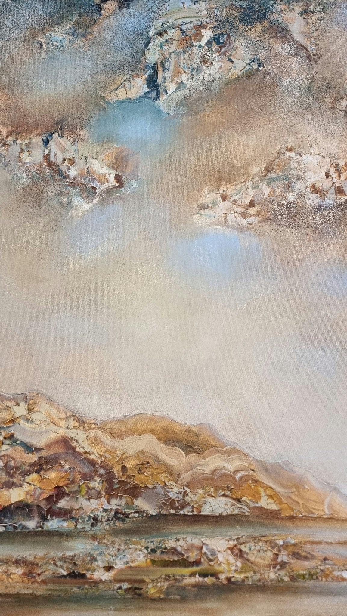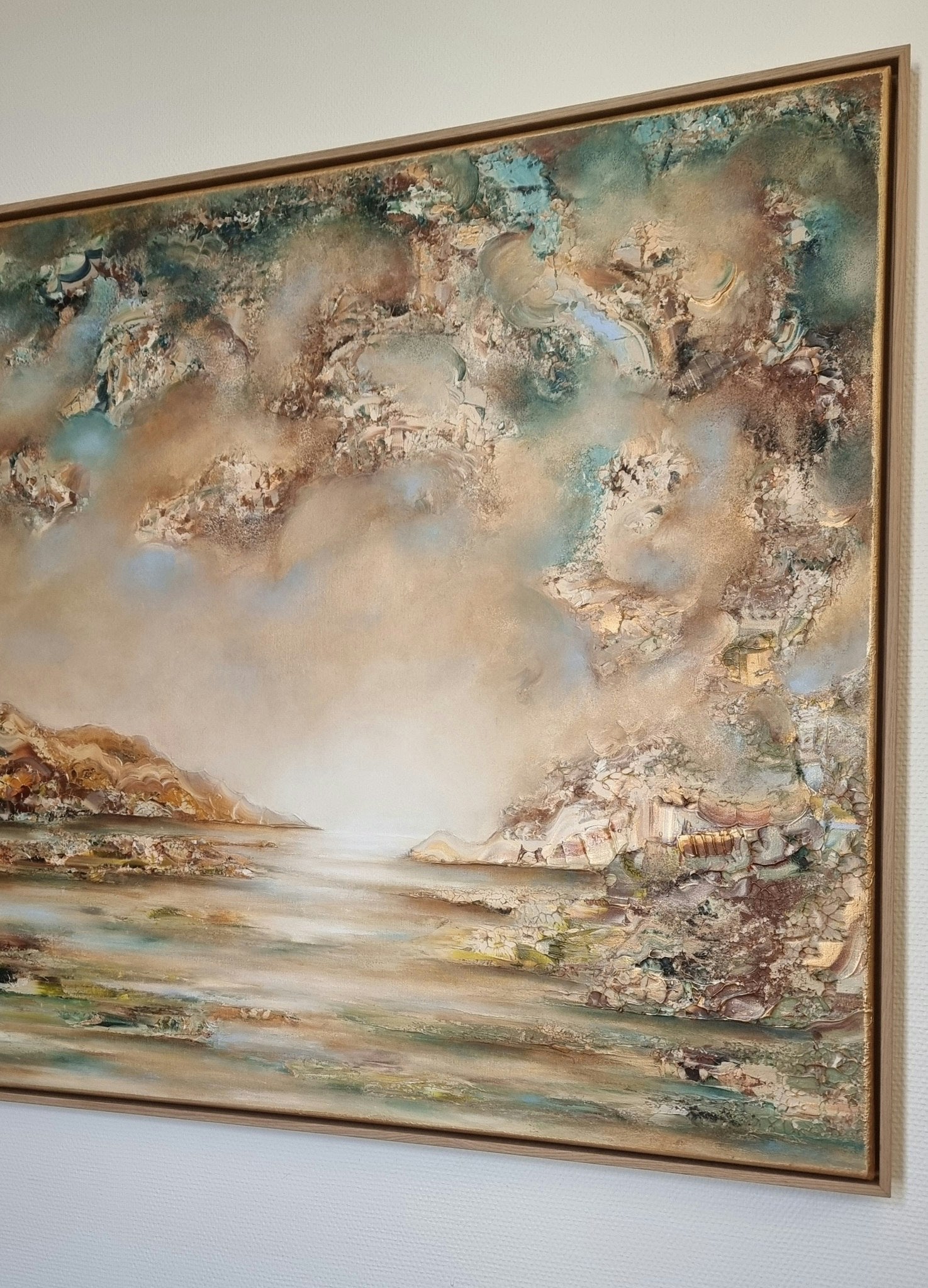 There's a lot going on in this dramatic and colourful landscape, which hints to the chaos of emotions that life can sometimes throw at you. At the same time there's an overall harmonious and positive feel to the painting, which reminds us that although feelings can be chaotic they are inherently meaningful and what makes life worth living.