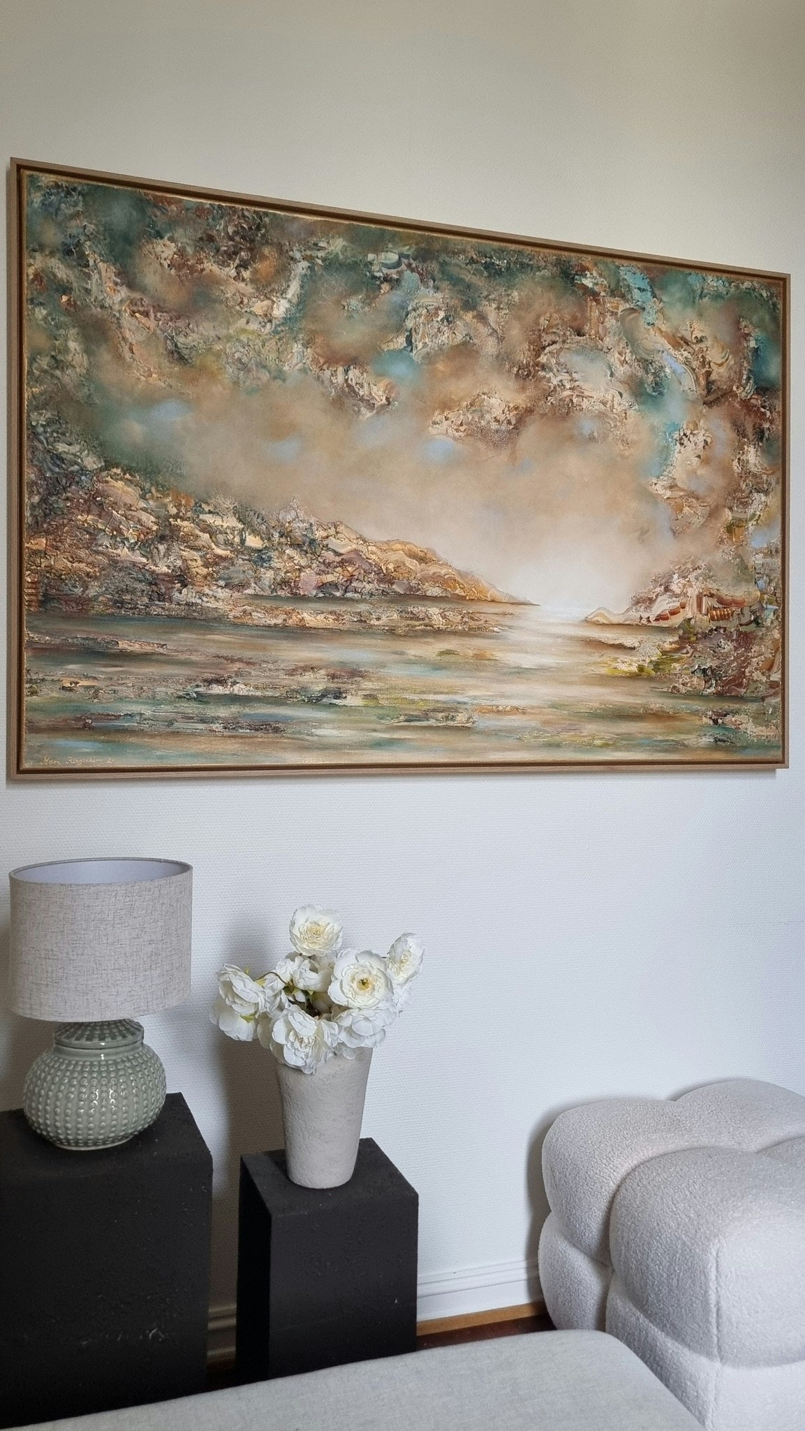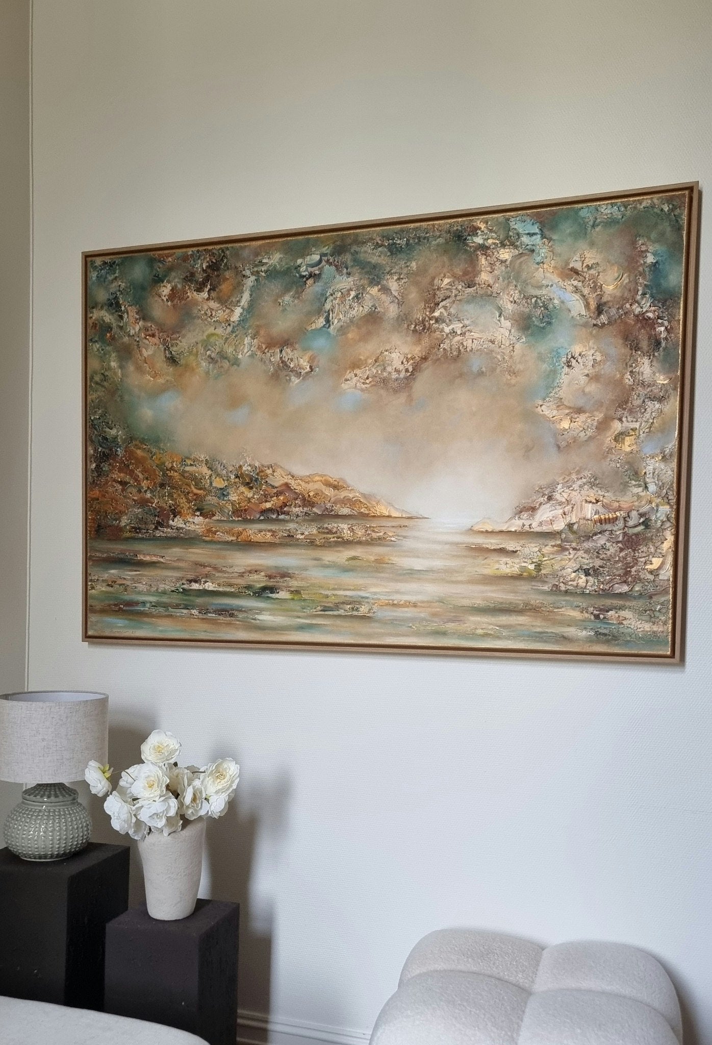 International shipping: The painting is shipped in a roll, and can be taken to your local frame workshop to be restretched. Standard international shipping is 500 NOK. If you have any questions about shipping please contact me through the contact form on my website or through instagram.