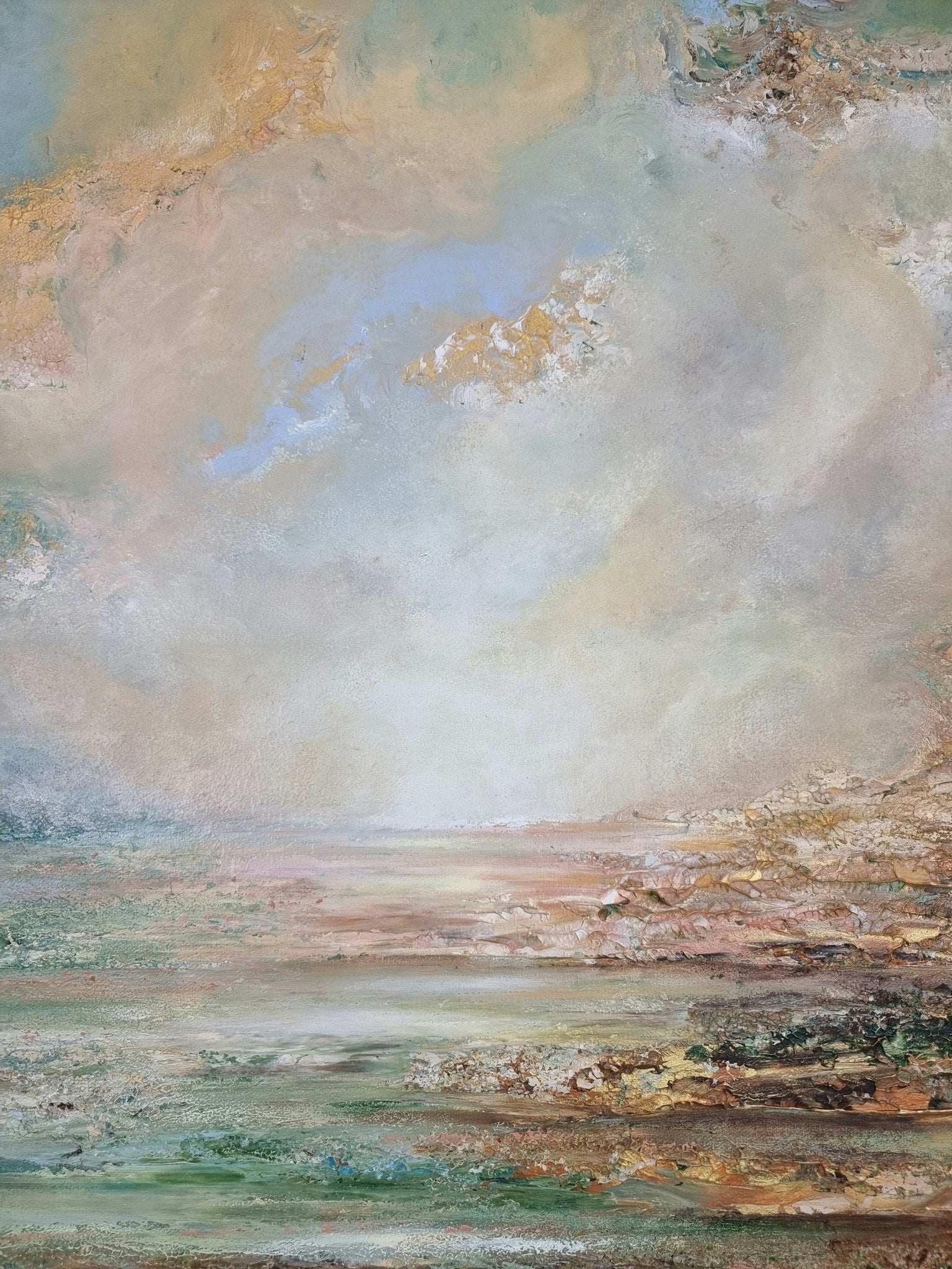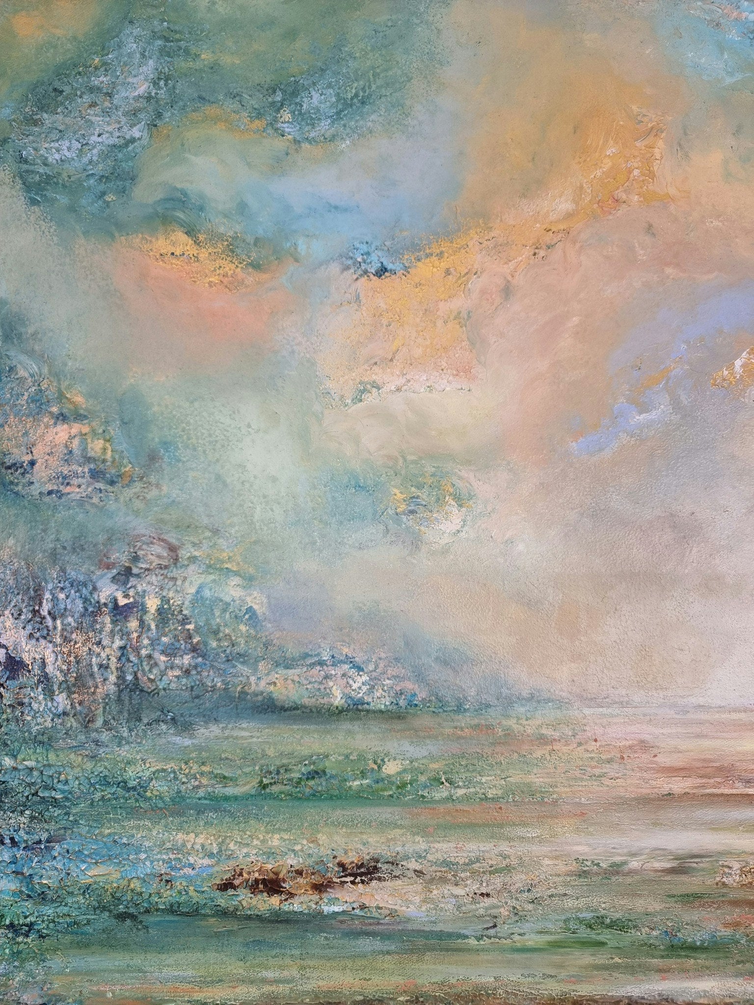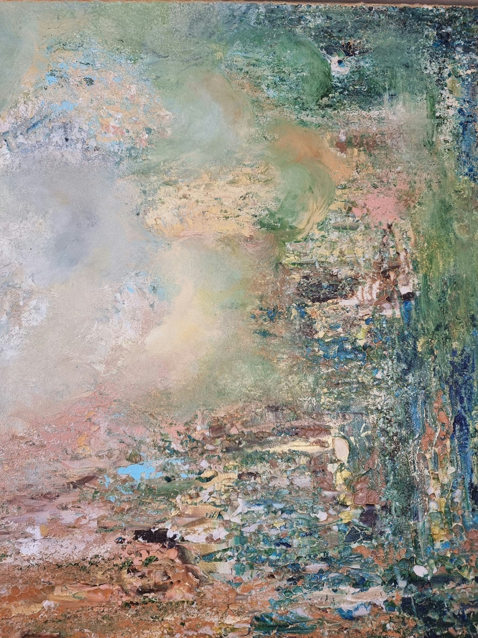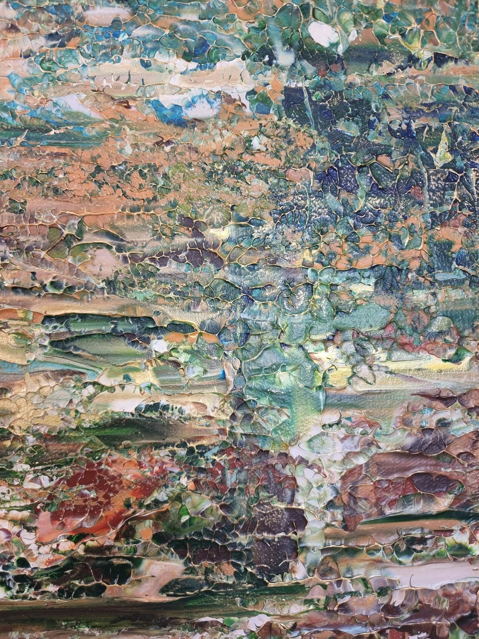 This artwork has so many colours! I love the richess that this effects creates, it contrubutes to an intetest that makes sure you'll never get tired of looking at this painting. As always I've focused on the light, to create a curious and hopeful feeling in the viewer??