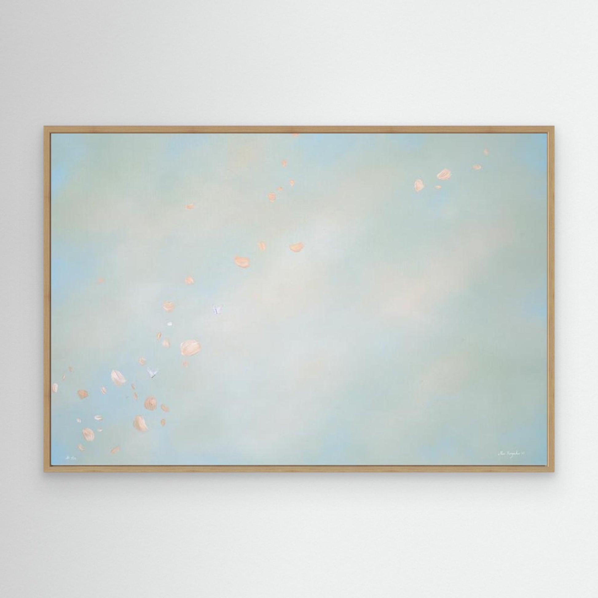 The edges of the canvas are mirrored. I highly recommend getting it with a floating frame, which will give the print an elevated, gallery-style appearance. The print “floats” inside a shadow gap frame, available in black, white, or oak. The oak frames are a beautiful oak veneer on solid wood. Everything arrives fully assembled and ready to hang on a sawtooth hanger.