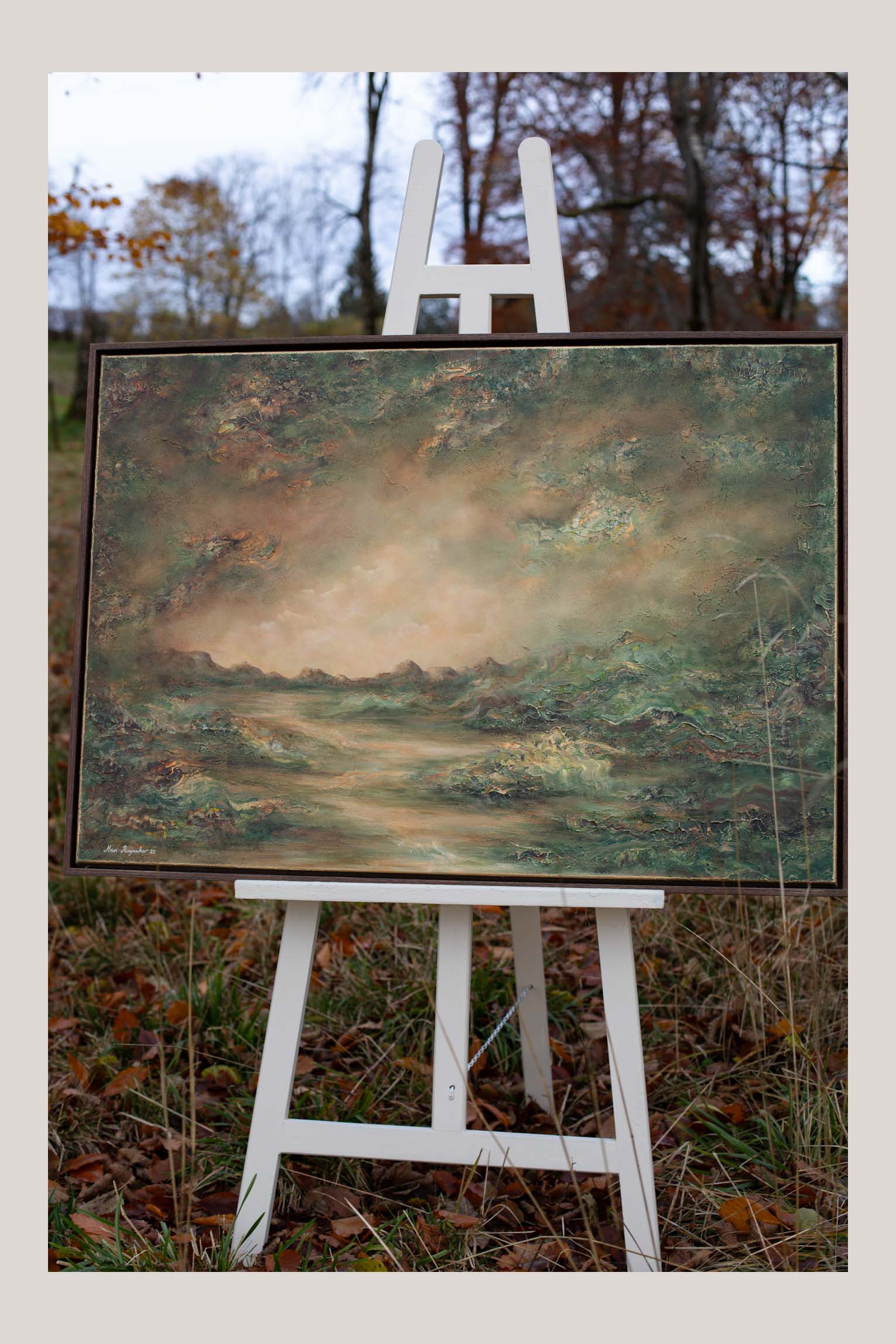 Please note that colors may appear slightly different in the photos. This variation reflects how tones shift in different environments and lighting conditions. Colors may also vary from screen to screen. For the most accurate view of the painting, turn your screen brightness all the way up and disable any blue light filters.