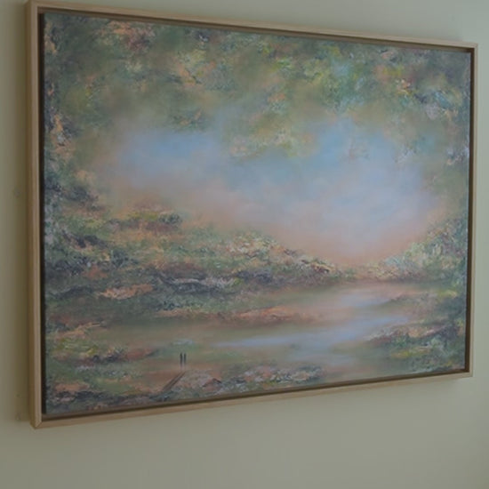The floater frames are 3,2 cm deep. The oak frame is made from solid wood with oak veneer on top. The floating frame gives your canvas the appearance of floating within the frame.