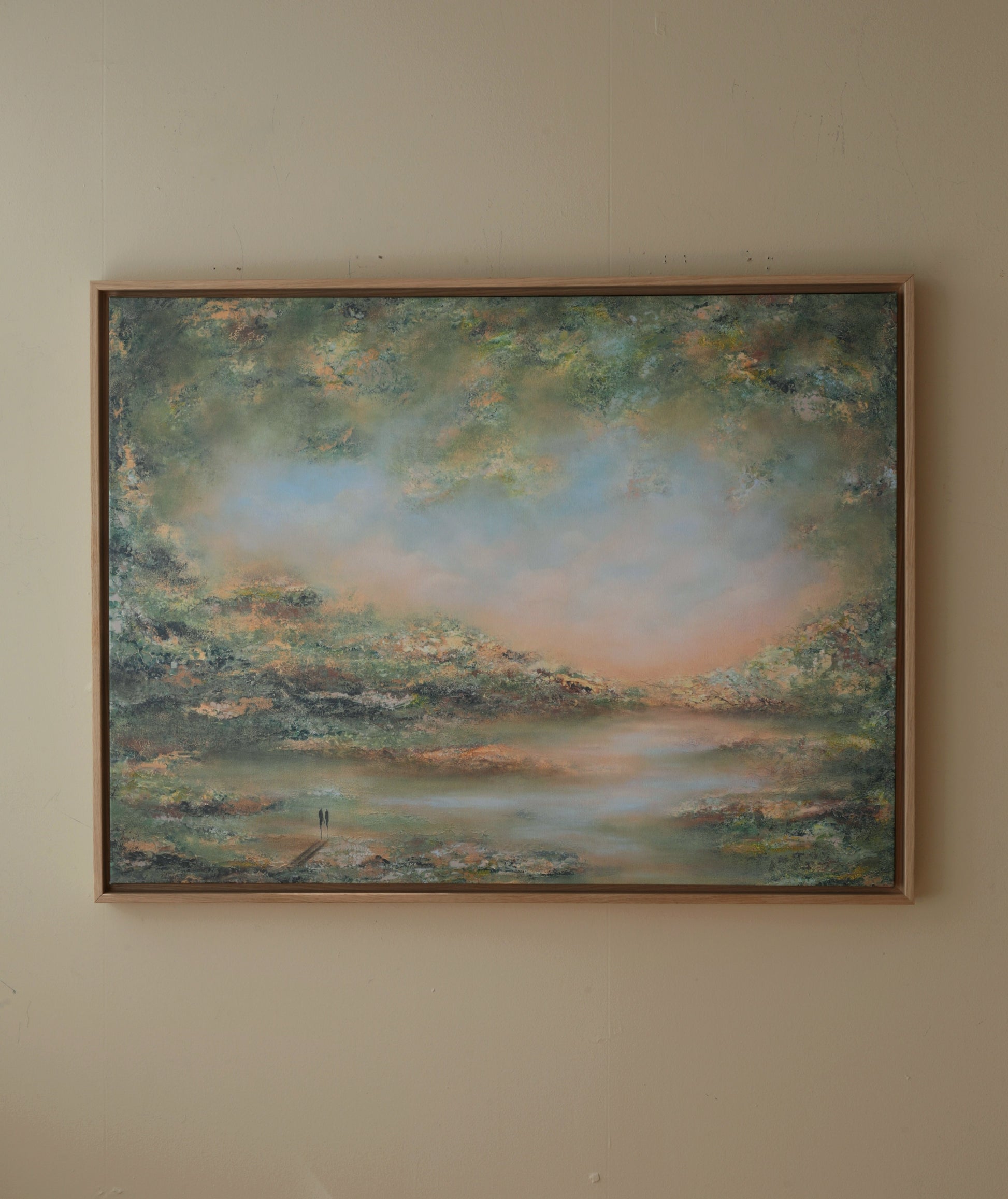 The edges of the canvas are mirrored. I highly recommend getting it with a floating frame, which will give the print an elevated, gallery-style appearance. The print “floats” inside a shadow gap frame, available in black, white, or oak. The oak frames are a beautiful oak veneer on solid wood. Everything arrives fully assembled and ready to hang on a sawtooth hanger.