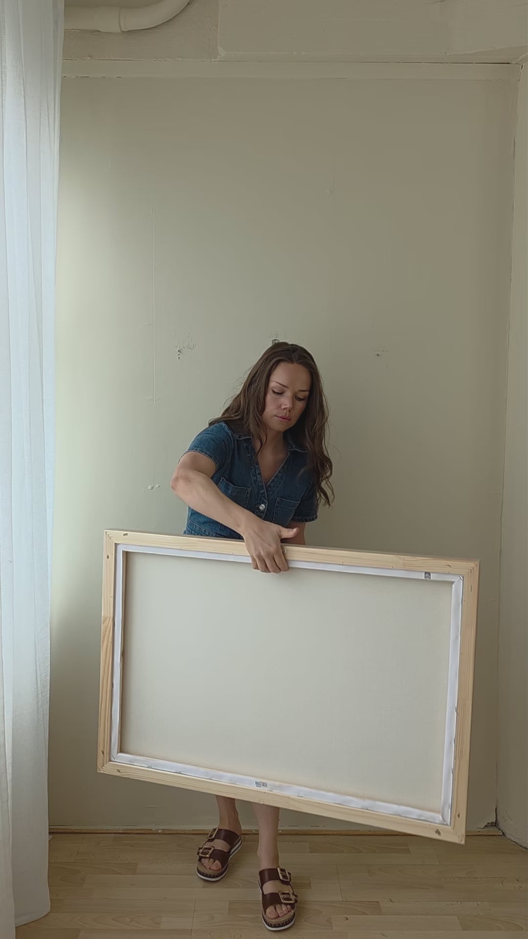 The floater frames are 3,2 cm deep. The oak frame is made from solid wood with oak veneer on top. The floating frame gives your canvas the appearance of floating within the frame.