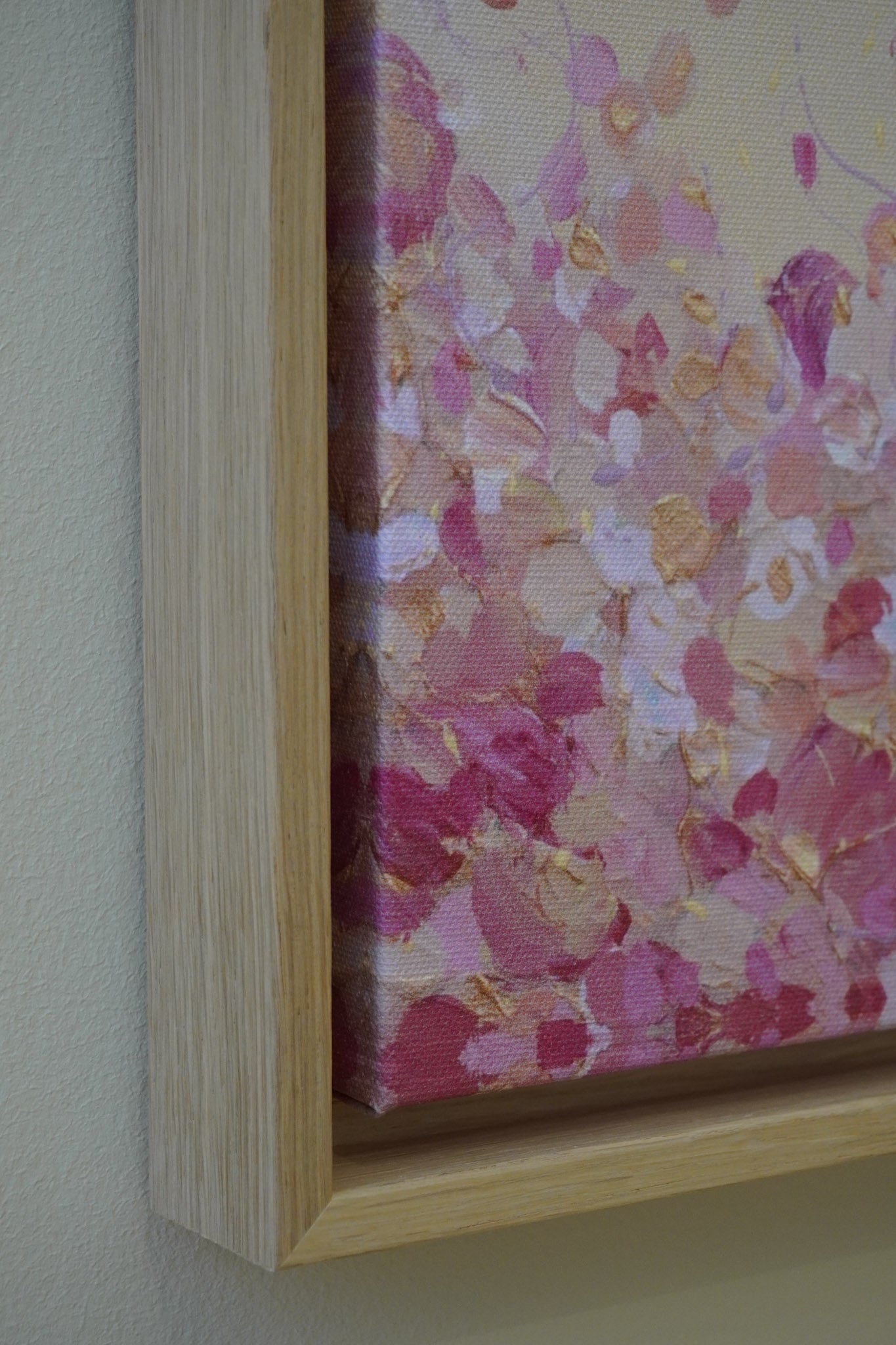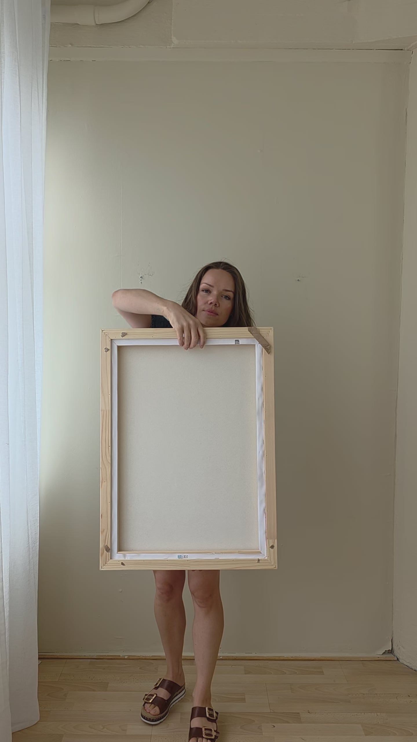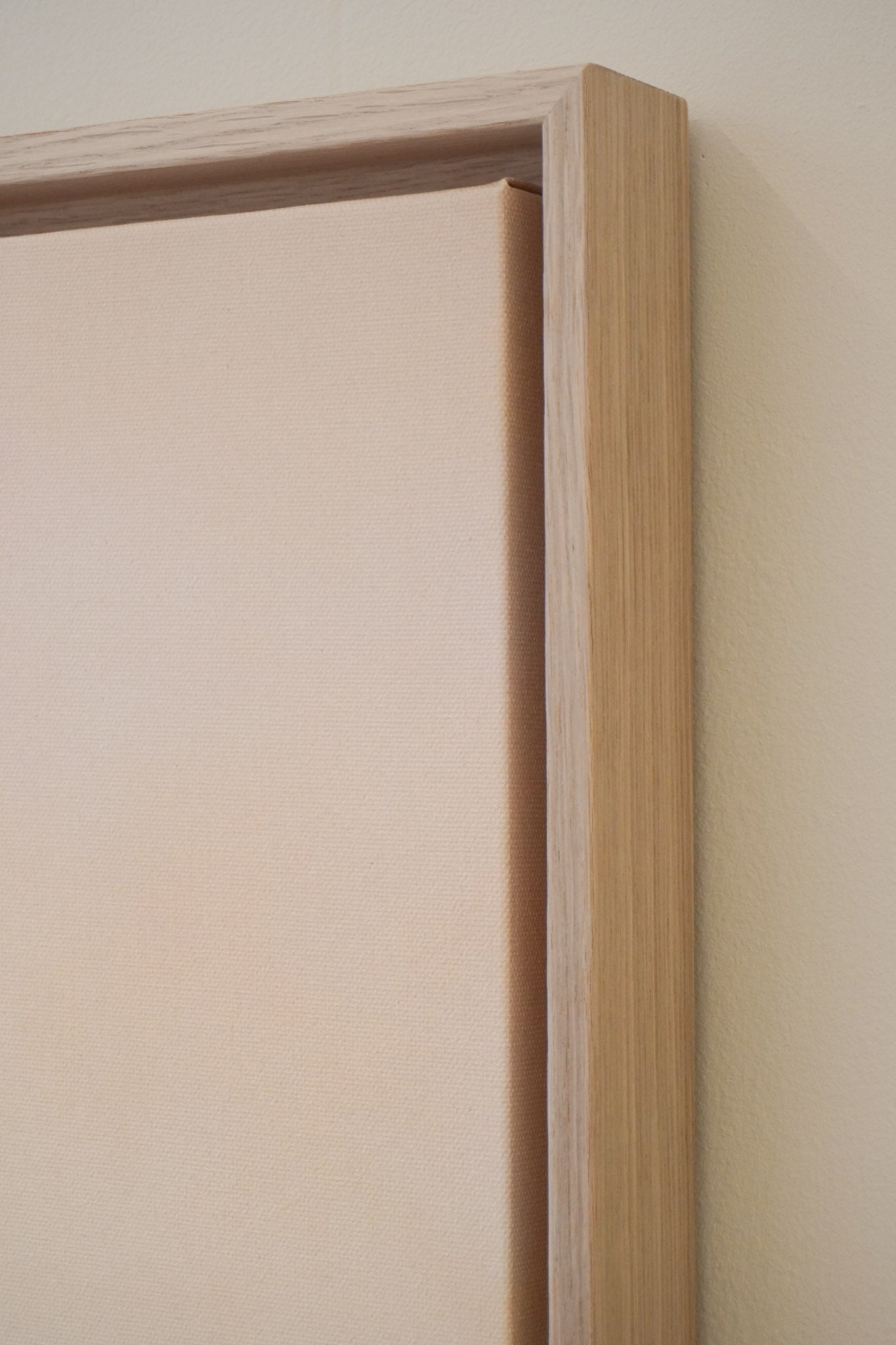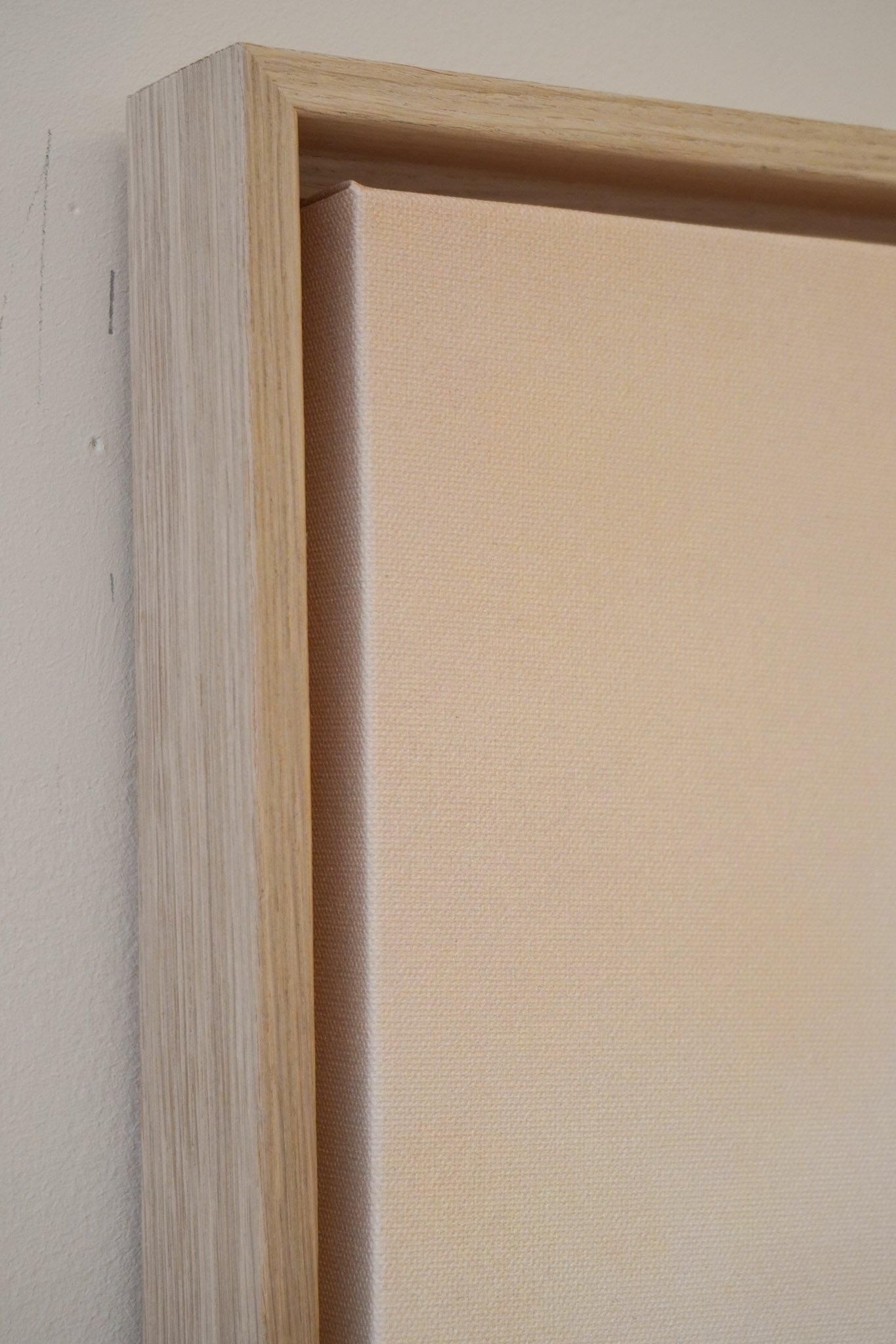 The floater frames are 3,2 cm deep. The oak frame is made from solid wood with oak veneer on top. The floating frame gives your canvas the appearance of floating within the frame.