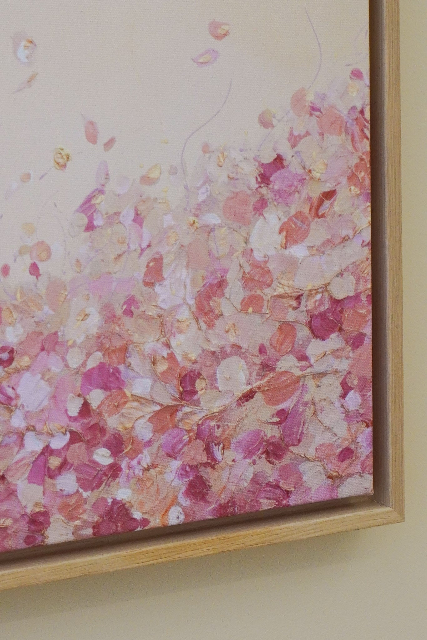 The edges of the canvas are mirrored. I highly recommend getting it with a floating frame, which will give the print an elevated, gallery-style appearance. The print “floats” inside a shadow gap frame, available in black, white, or oak. The oak frames are a beautiful oak veneer on solid wood. Everything arrives fully assembled and ready to hang on a sawtooth hanger.