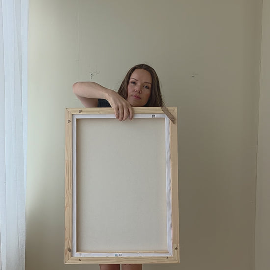 Each artwork is carefully produced by hand, printed with archival pigment inks on museum-grade canvas (344 gsm). The canvas is UV-protected and printed in lightfast colors that won’t fade over time. The canvas is made from a thick mix between cotton and polyester canvas with rich texture and depth, and a non-reflective surface.