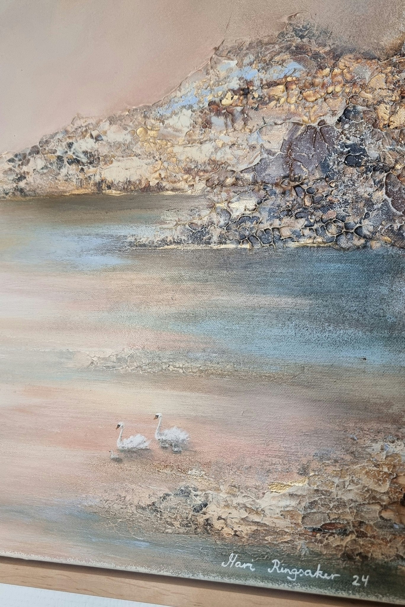 International shipping: The painting is shipped in a roll, and you can take it to your local frame workshop to have it restretched. Standard international shipping is 500 NOK. If you have any questions about shipping please contact me through the contact form on my website or through instagram.