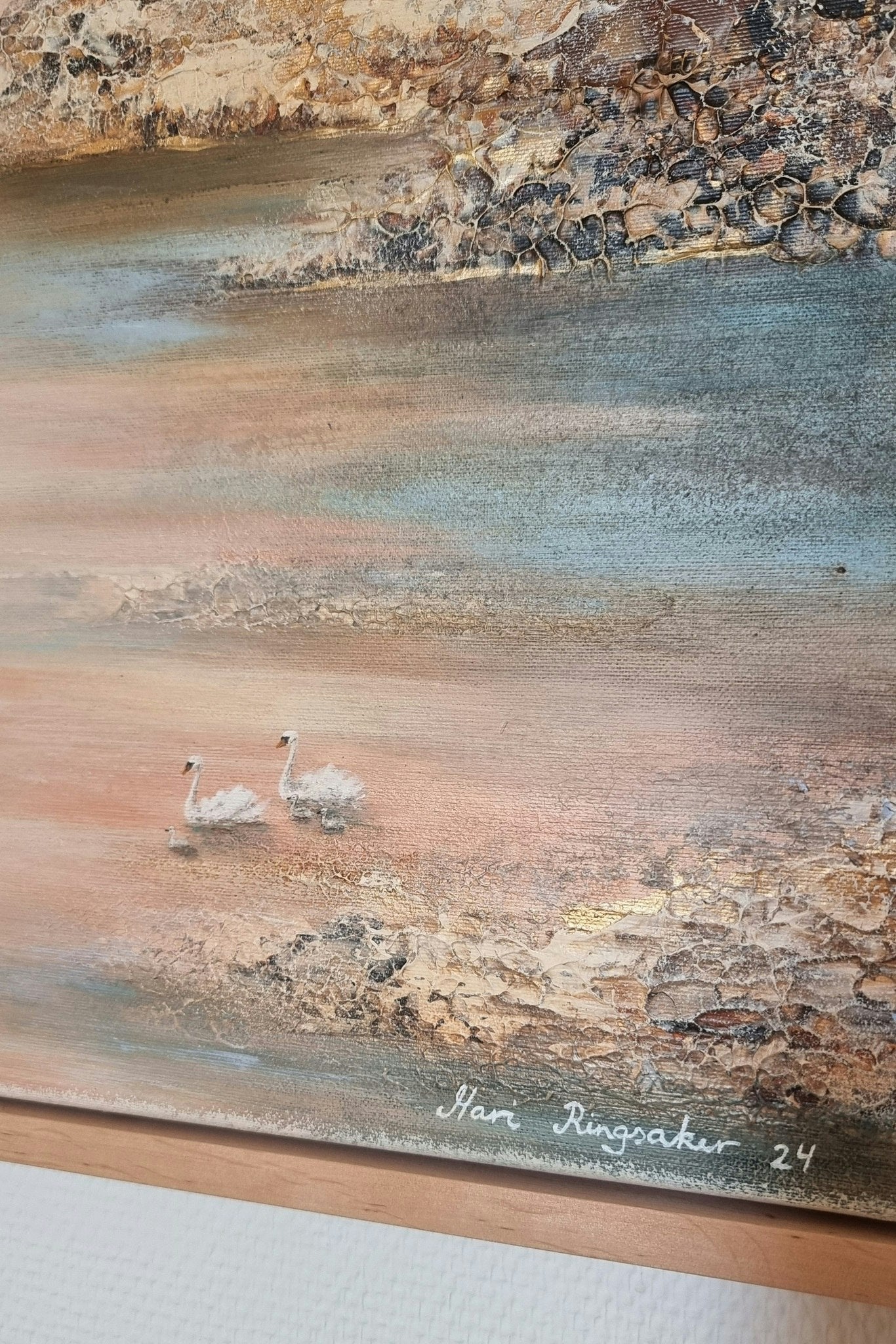 Floating frame: Not included in the price. A floating frame in akasie wood as seen in the pictures can be added within Norway for an additional 1800 NOK. Please note this in your order at checkout to arrange this, or contact me via the contact form if you have any questions. Payment for the frame will be arranged later, I will contact you via e-mail.