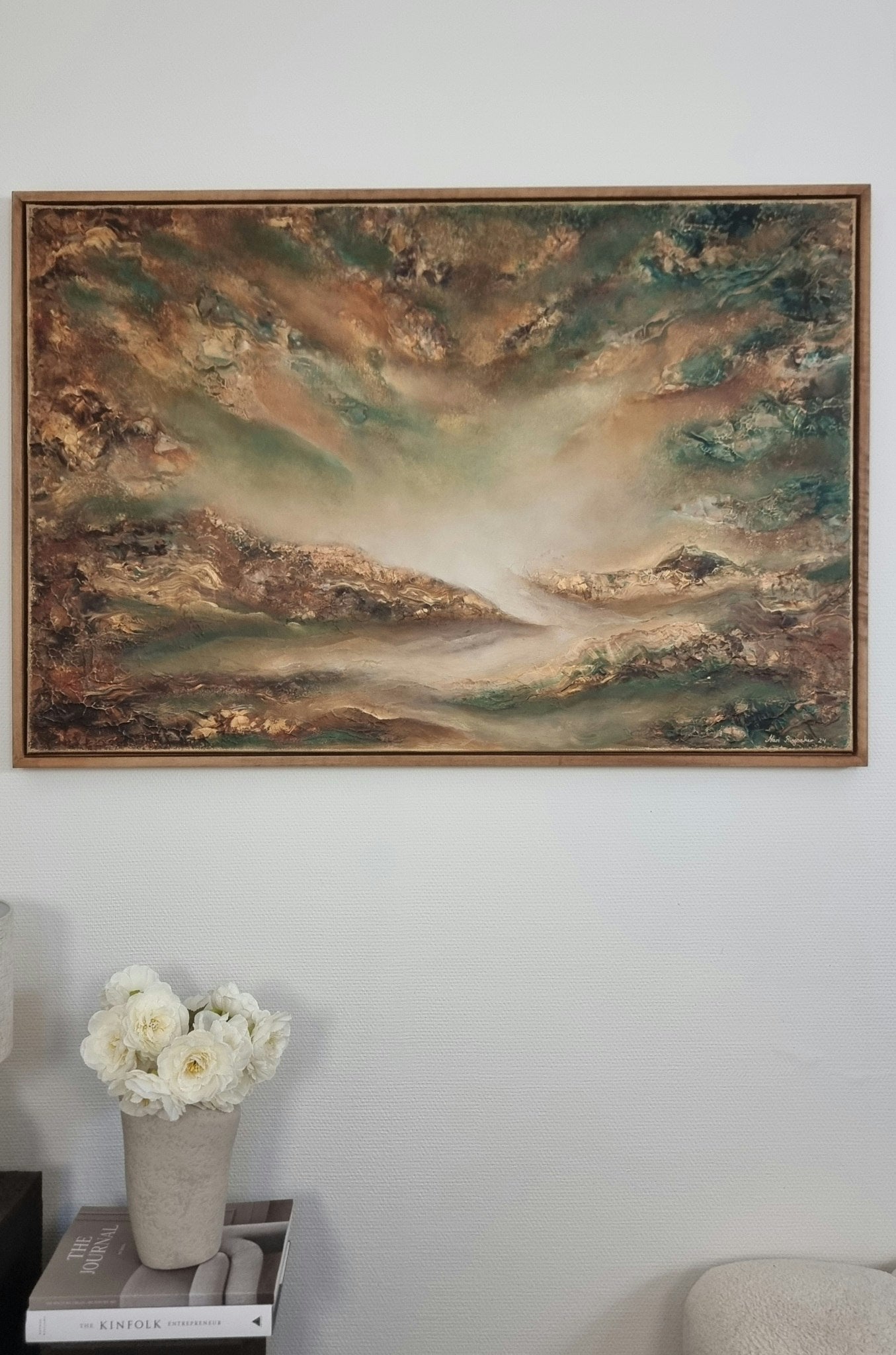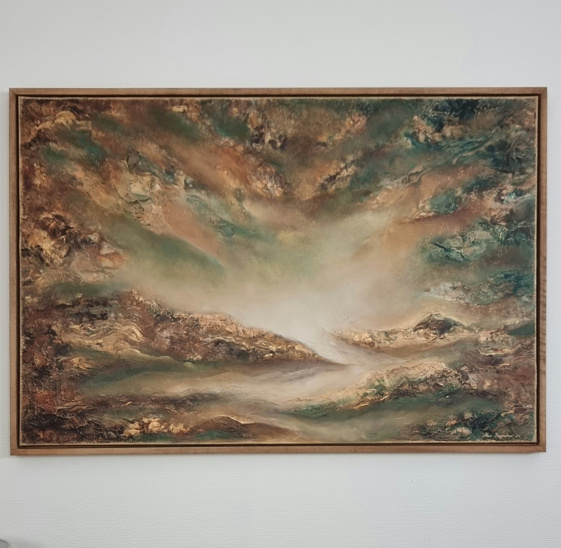 International shipping: The painting is shipped in a roll, and you can take it to your local frame workshop to have it restretched. Standard international shipping is 500 NOK. If you have any questions about shipping please contact me through the contact form on my website or through instagram. If you would like the painting shipped stretched and with the frame please contact me, and I'll check shipping options to your location.