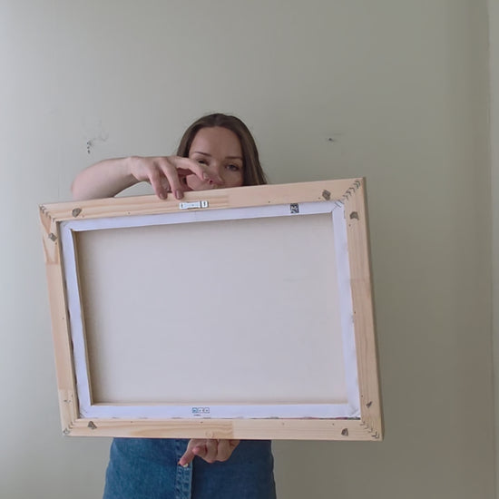 Each artwork is carefully produced by hand, printed with archival pigment inks on museum-grade canvas (344 gsm). The canvas is UV-protected and printed in lightfast colors that won’t fade over time. The canvas is made from a thick mix between cotton and polyester canvas with rich texture and depth, and a non-reflective surface.