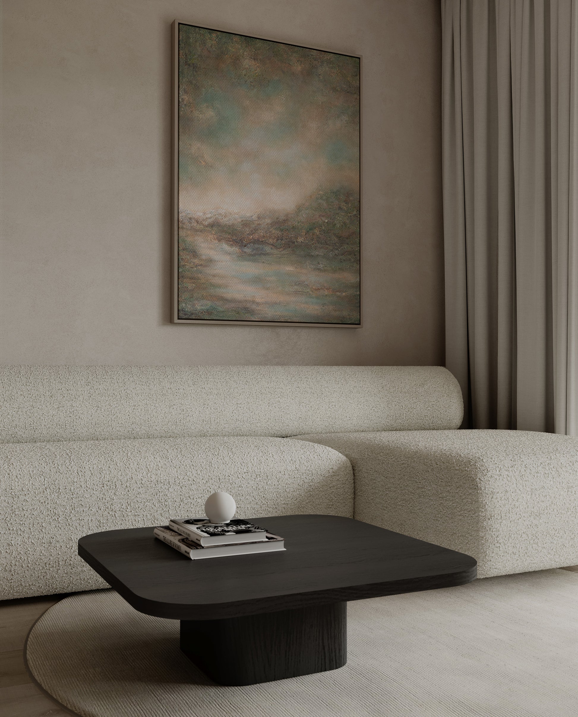 The floater frames are 3,2 cm deep. The oak frame is made from solid wood with oak veneer on top. The floating frame gives your canvas the appearance of floating within the frame.