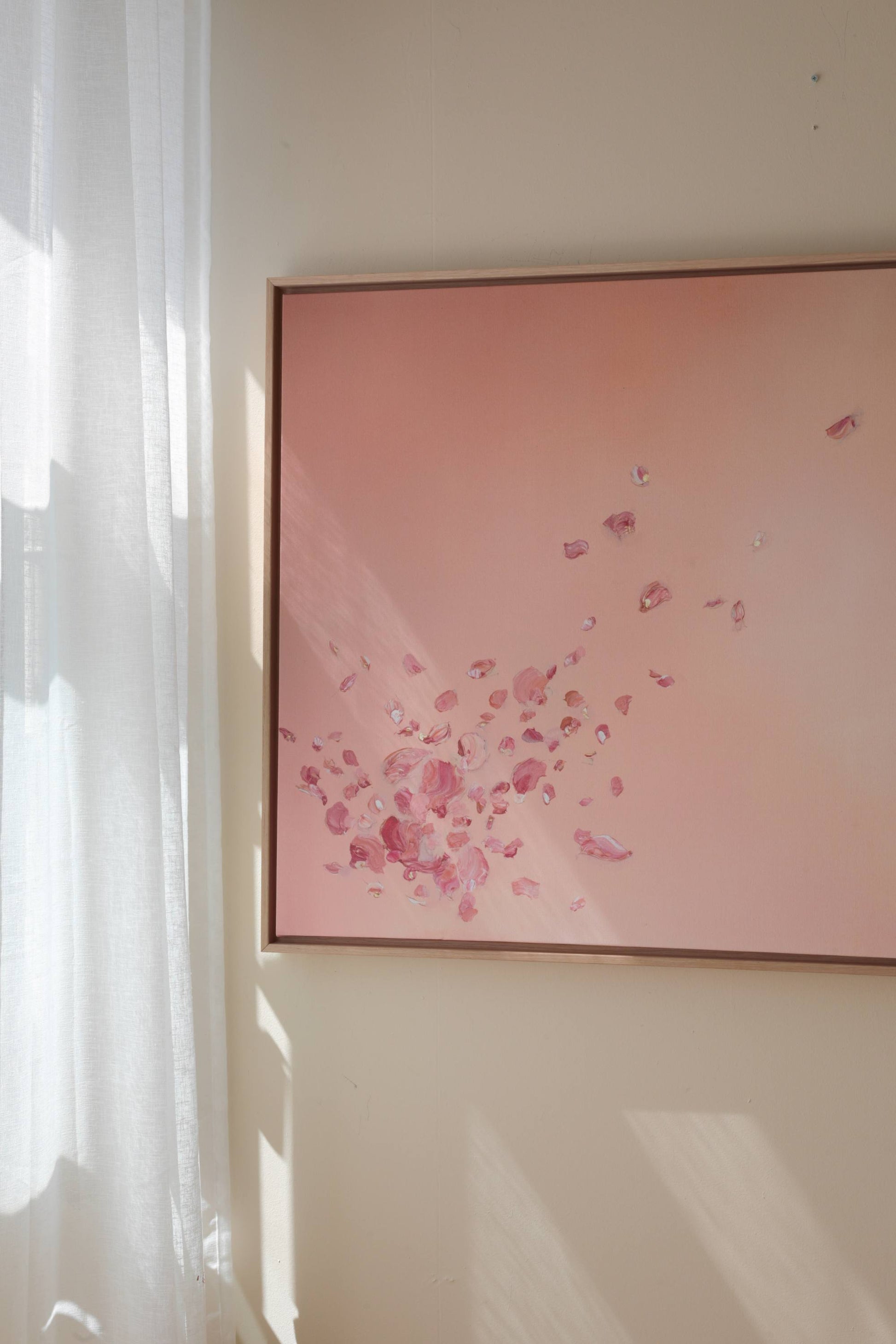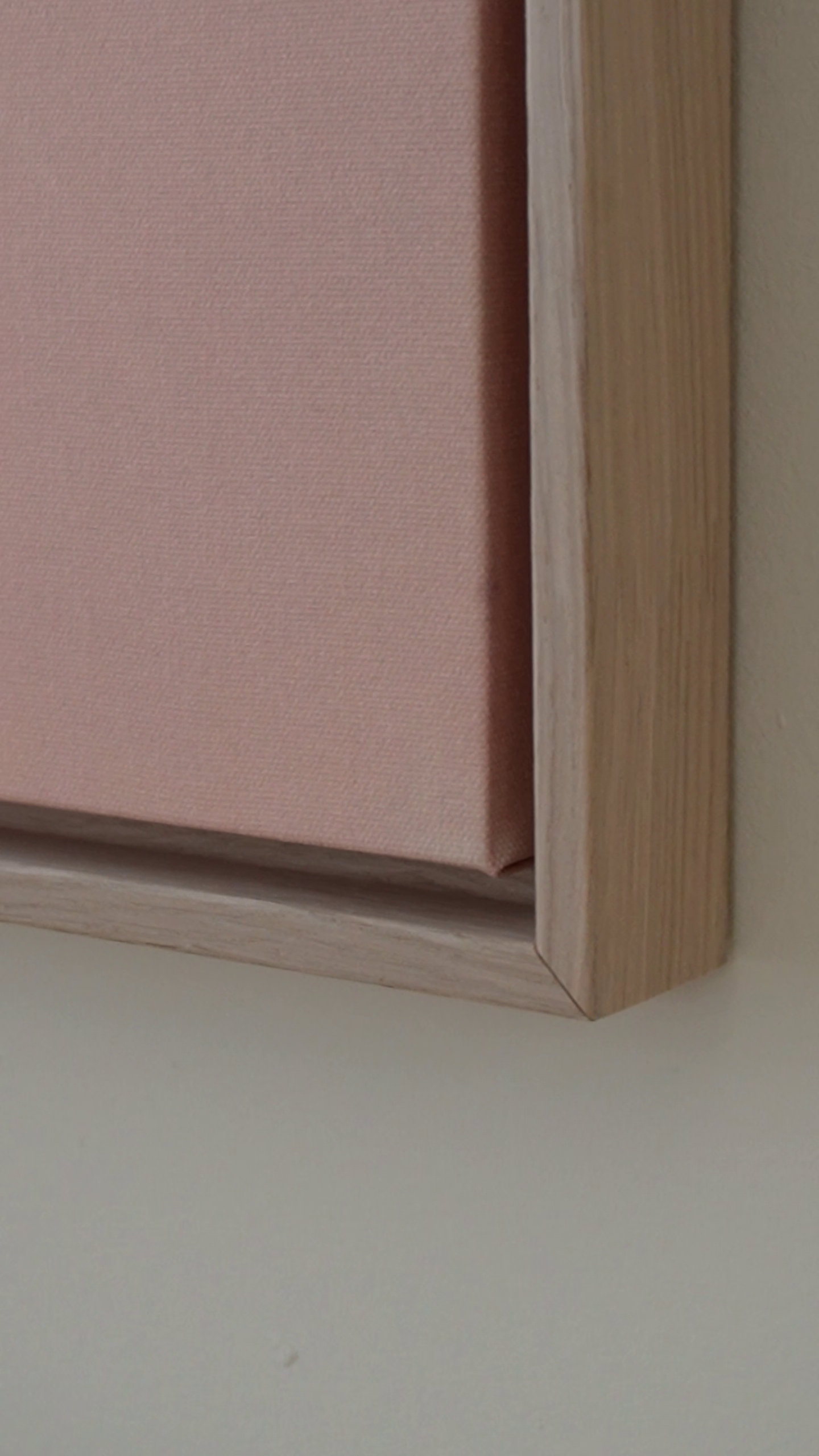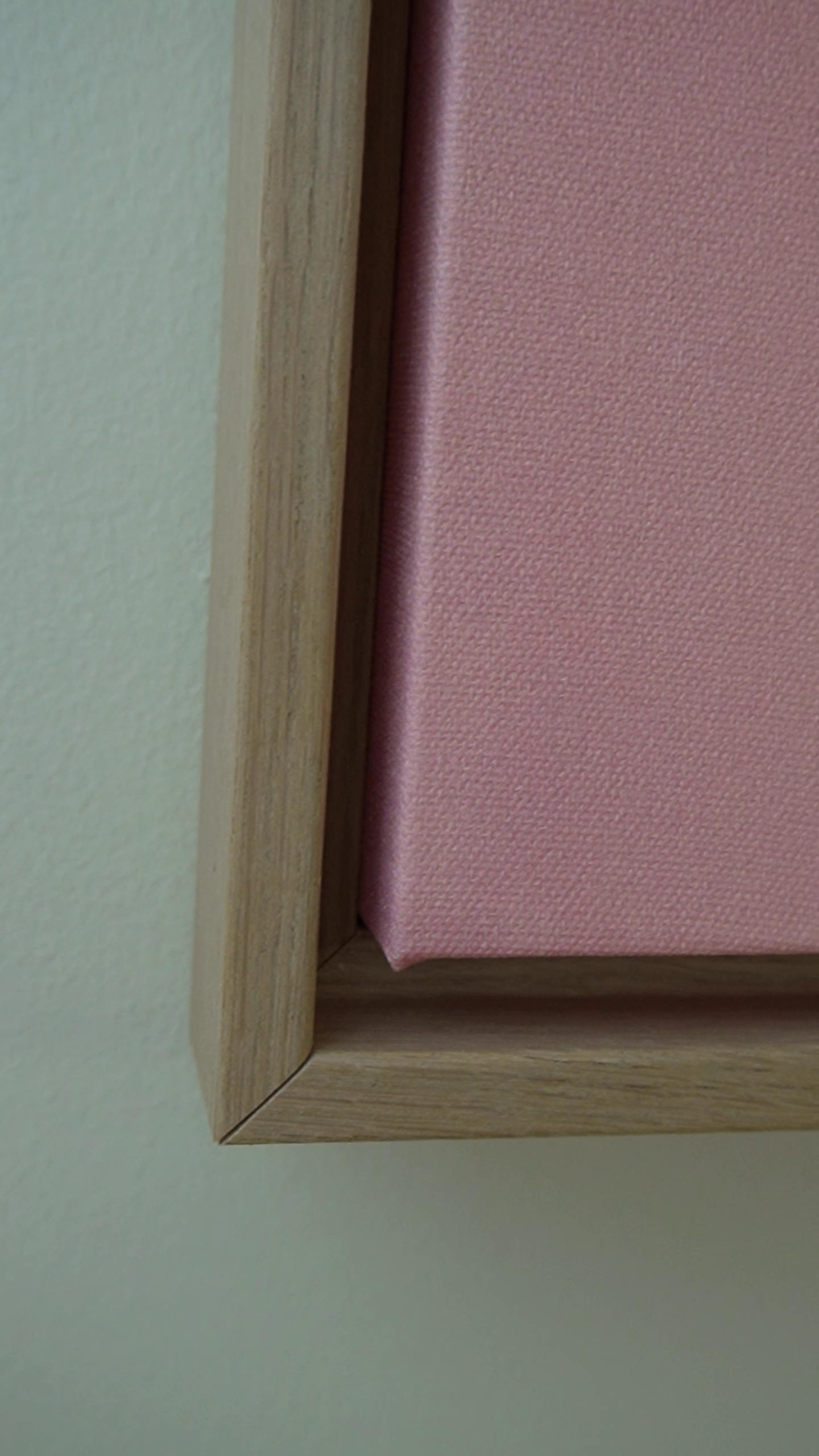 The floater frames are 3,2 cm deep. The oak frame is made from solid wood with oak veneer on top. The floating frame gives your canvas the appearance of floating within the frame.